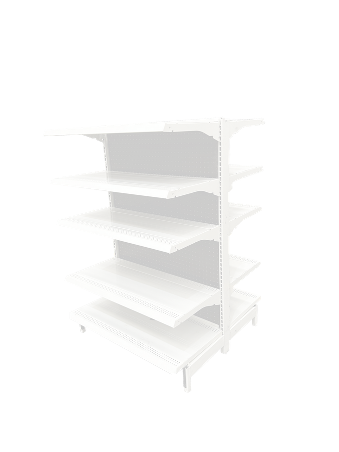 Cabecera de góndola central Sistema T con 4 entrepaños por tramo.
